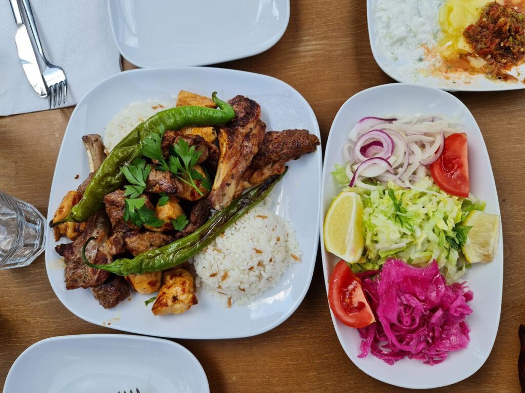 - أطباق تركية لذيذة: يقدم مشاوي ومقبلات تقليدية.